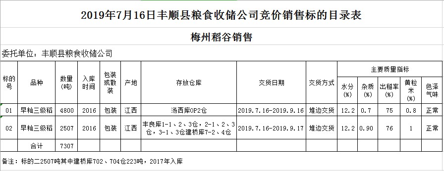 受客戶委托,梅州市嘉應(yīng)糧食交易中心有限公司定于2019年7月16日(星期二)舉辦糧食競(jìng)價(jià)交易會(huì),豐順縣糧食收儲(chǔ)公司擬銷售2016年早秈稻7084噸2017年早秈稻223噸。