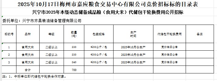 興寧市2025年本級動態(tài)儲備成品糧(食用大米)采購及代儲包干輪換費用公開招標公告
